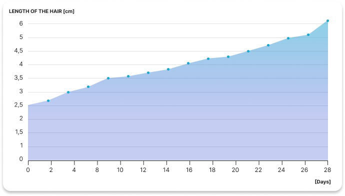 Rezultat nakon 28 dana: prosječno 6 cm duža kosa